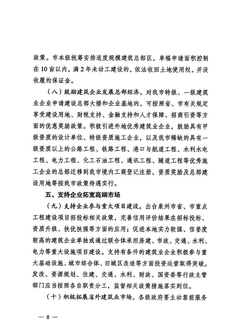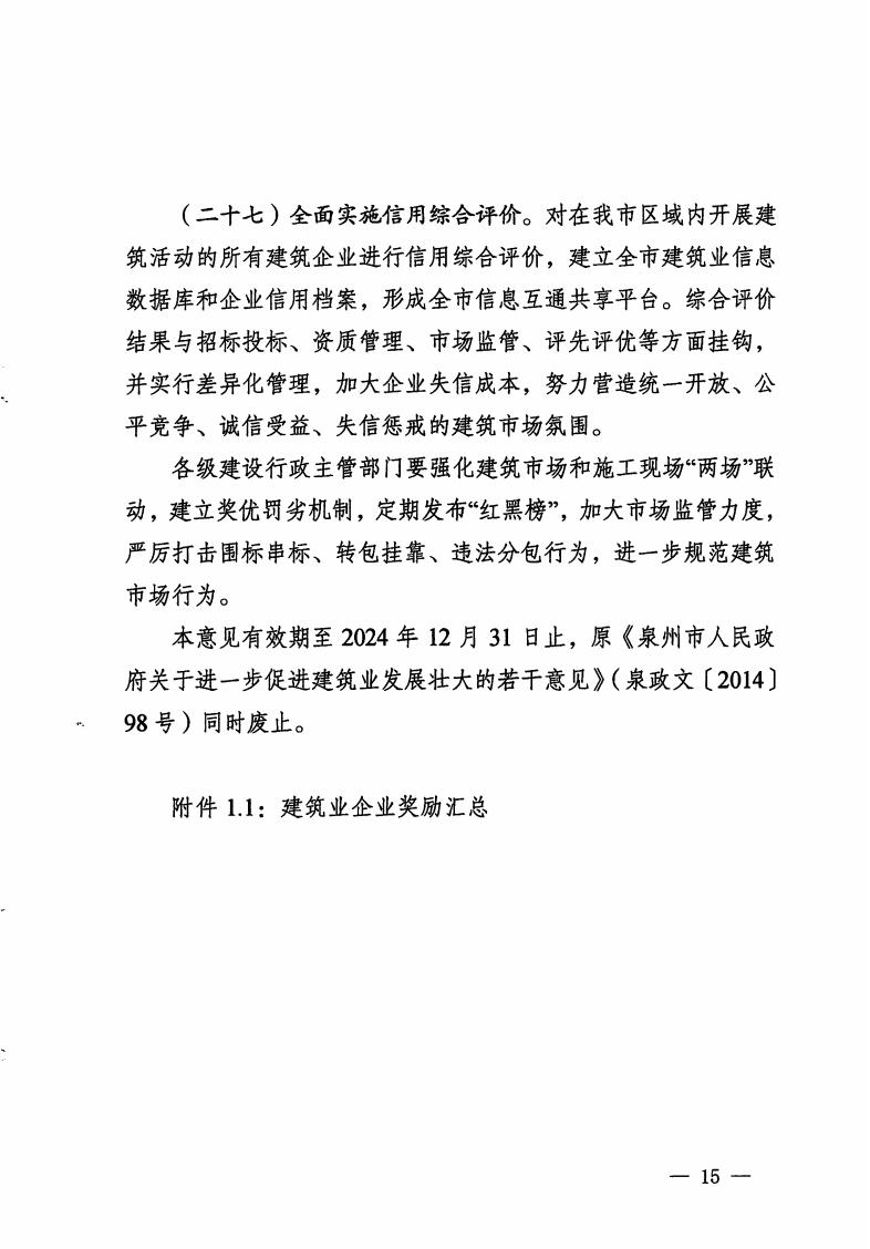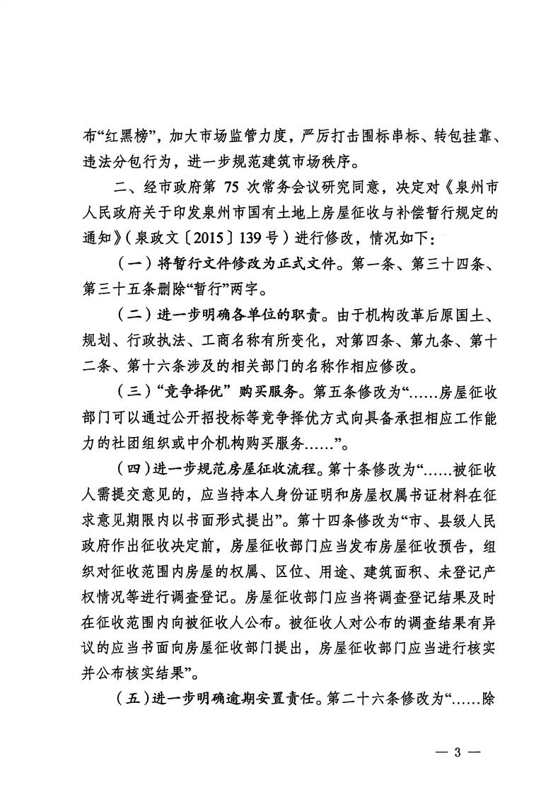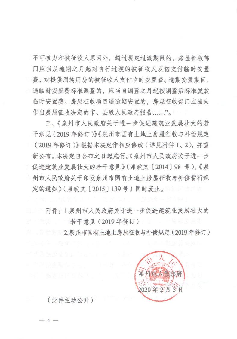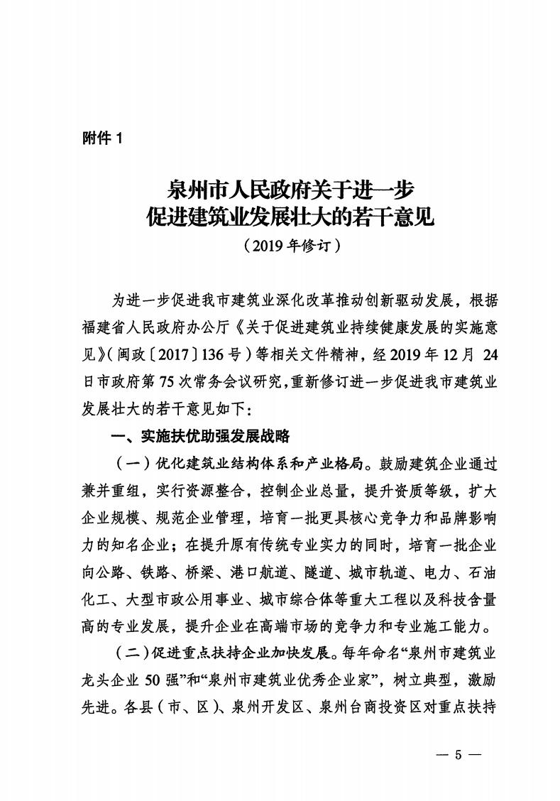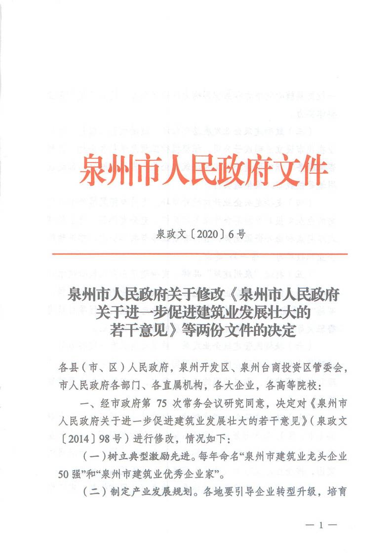 | 内容描述 | 泉州市人民政府关于修改《泉州市人民政府关于进一步促进建筑业发展壮大的若干意见》等两份文件的决定 | ||
