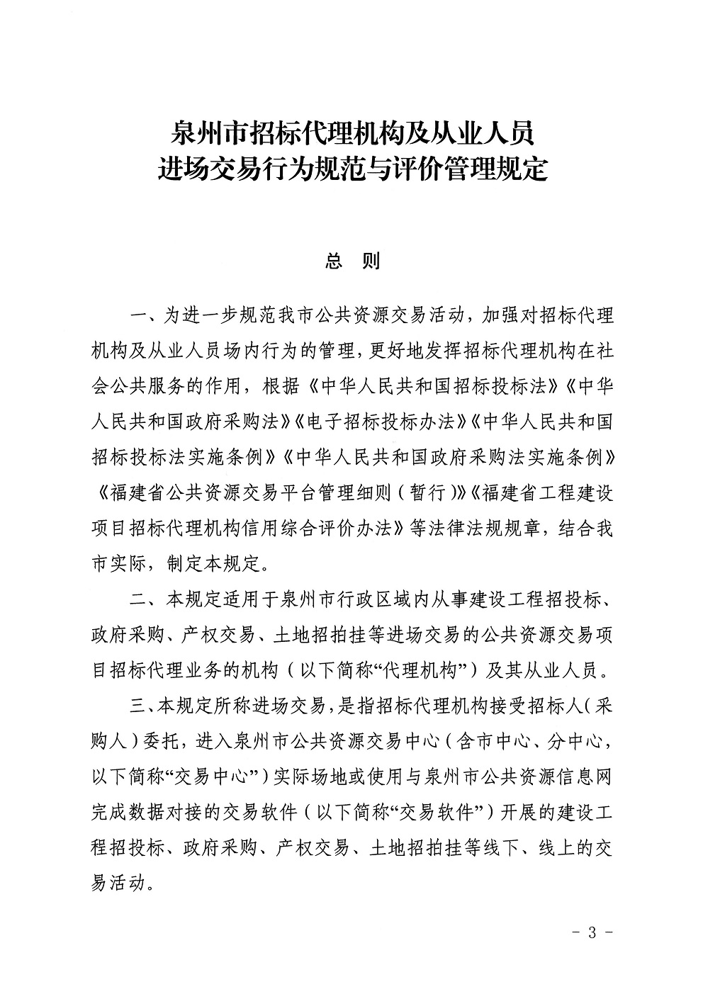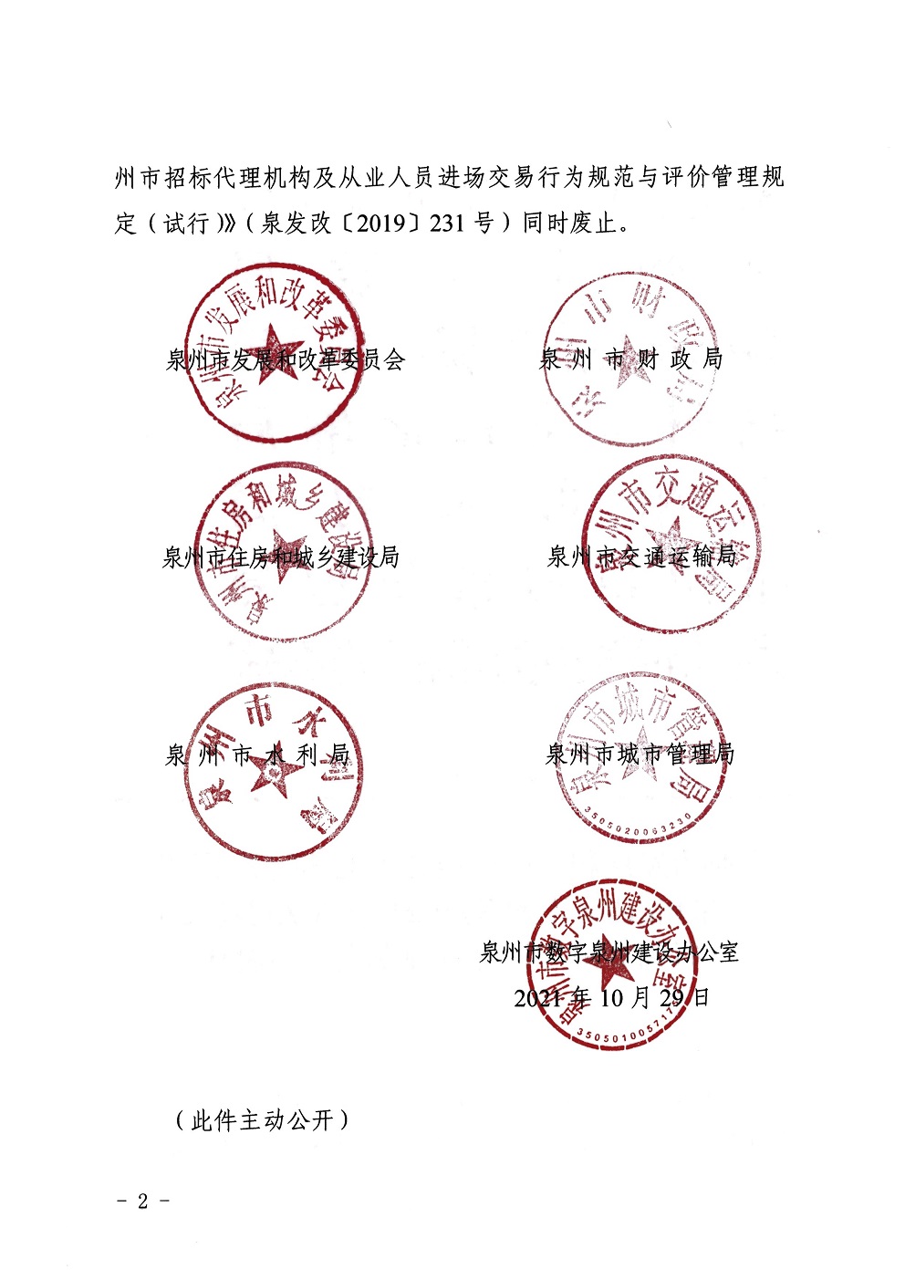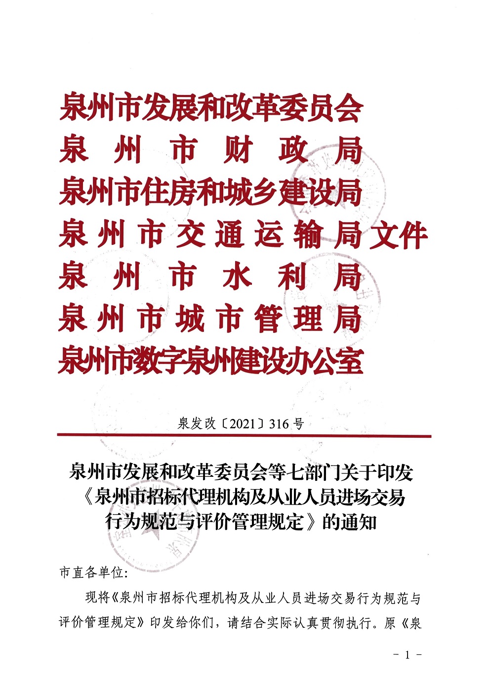 内容描述 泉州市发展和改革委员会等七部门关于印发《泉州市招标代理机构及从业人员进场交易行为规范与评价管理规定》的通知